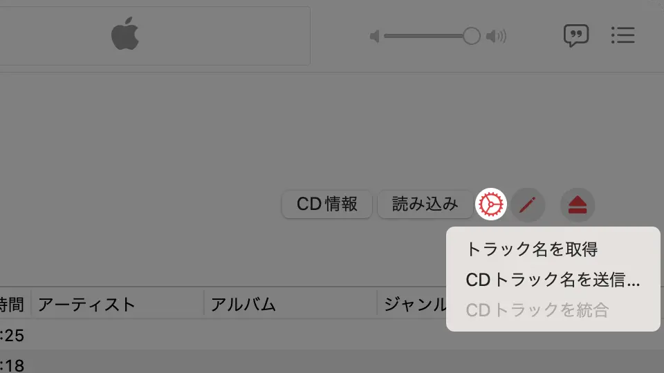 - 画面の右にある【歯車アイコン】>【トラック名を取得】をクリックします。