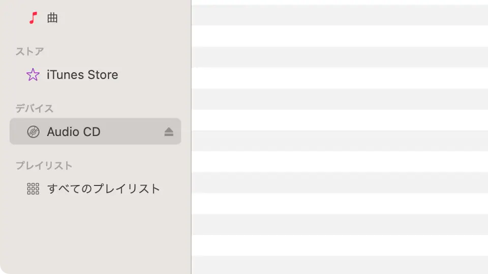 - ウィンドウの左にある[デバイス]より【Audio CD】をクリックします。