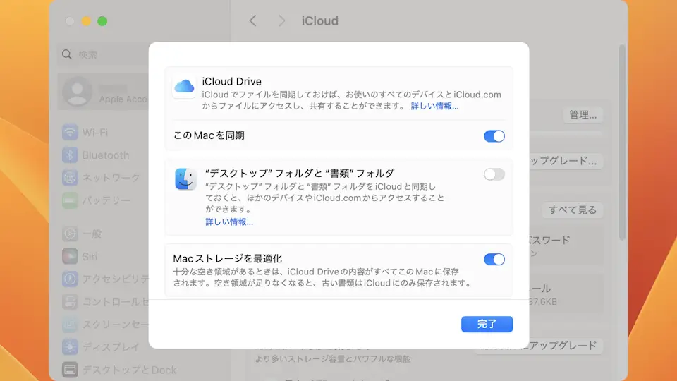 デスクトップ/書類フォルダの同期をオフにするやり方