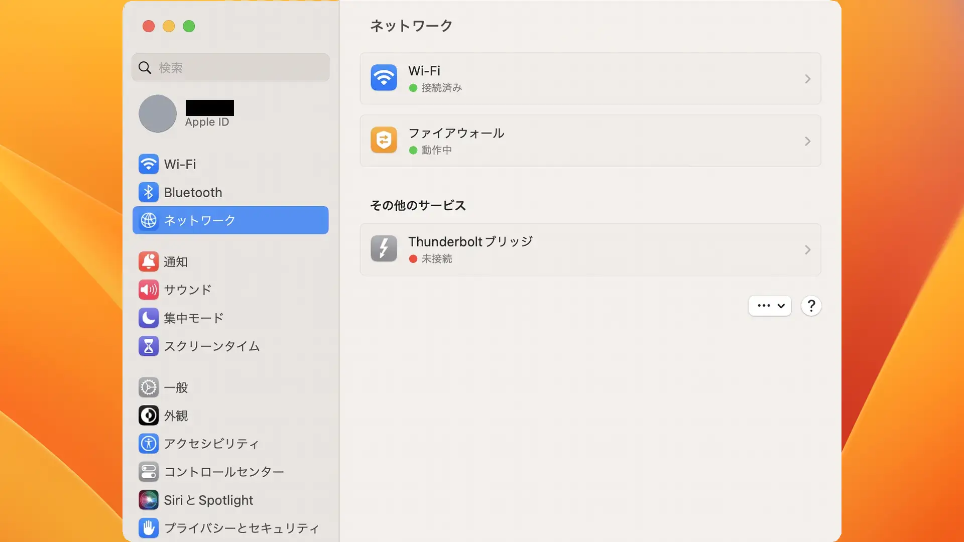 システム設定のネットワークより接続済みであることを確認します。