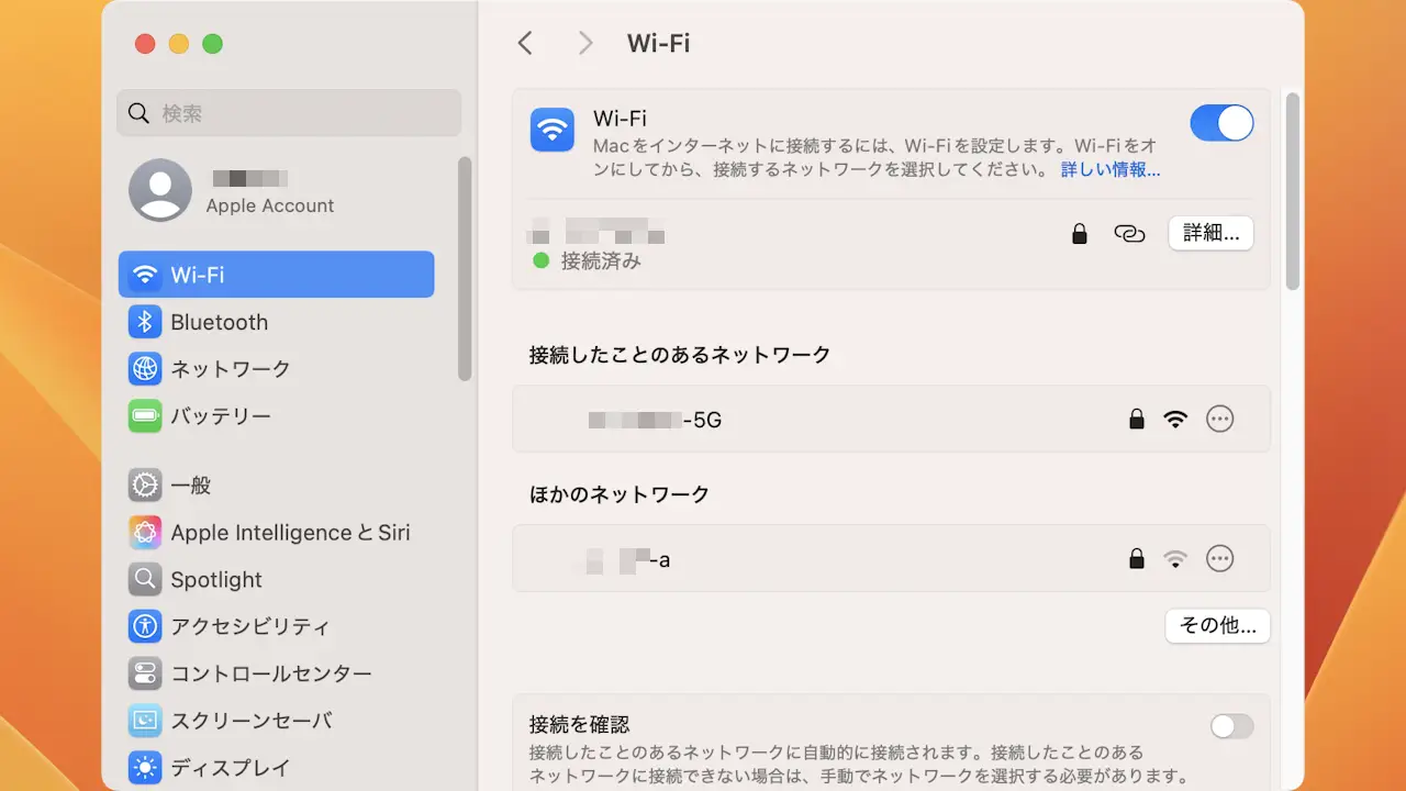 Mac→設定→Wi-Fi