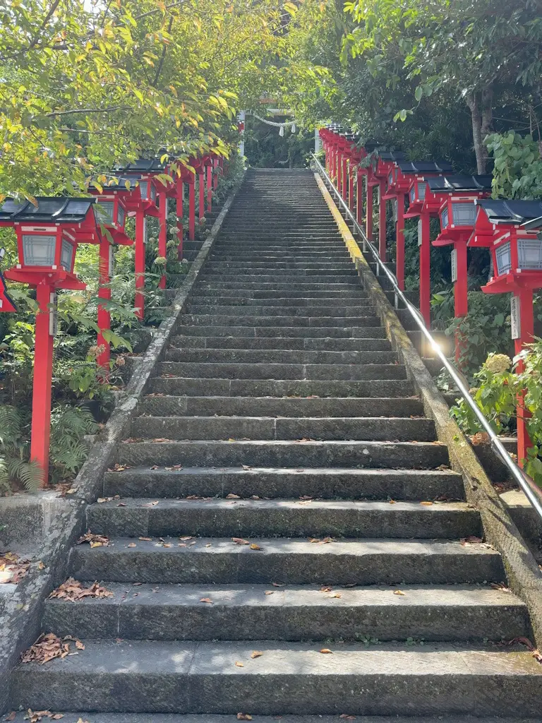 入口にある60段の階段に見覚えがあると思っていたら、雛人形を飾り付けることで有名な神社でした。訪れるまで気が付きませんでしたが、テレビなどで何度か見たことがある場所です。